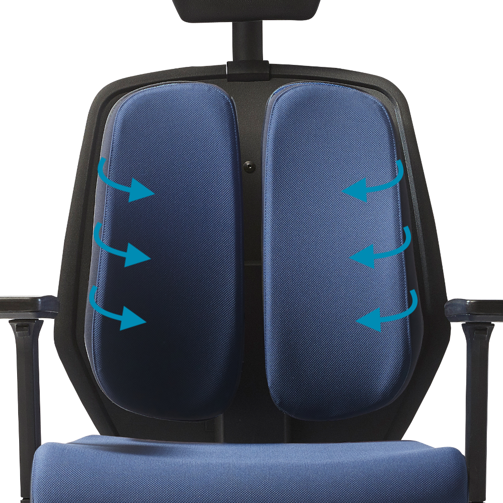 W modelu Alpha możesz niezależnie regulować każdą z dwóch części oparcia. Dopasuj je idealnie do swojej sylwetki, zapewniając kręgosłupowi precyzyjne, symetryczne podparcie, jakiego nie da żaden inny fotel.