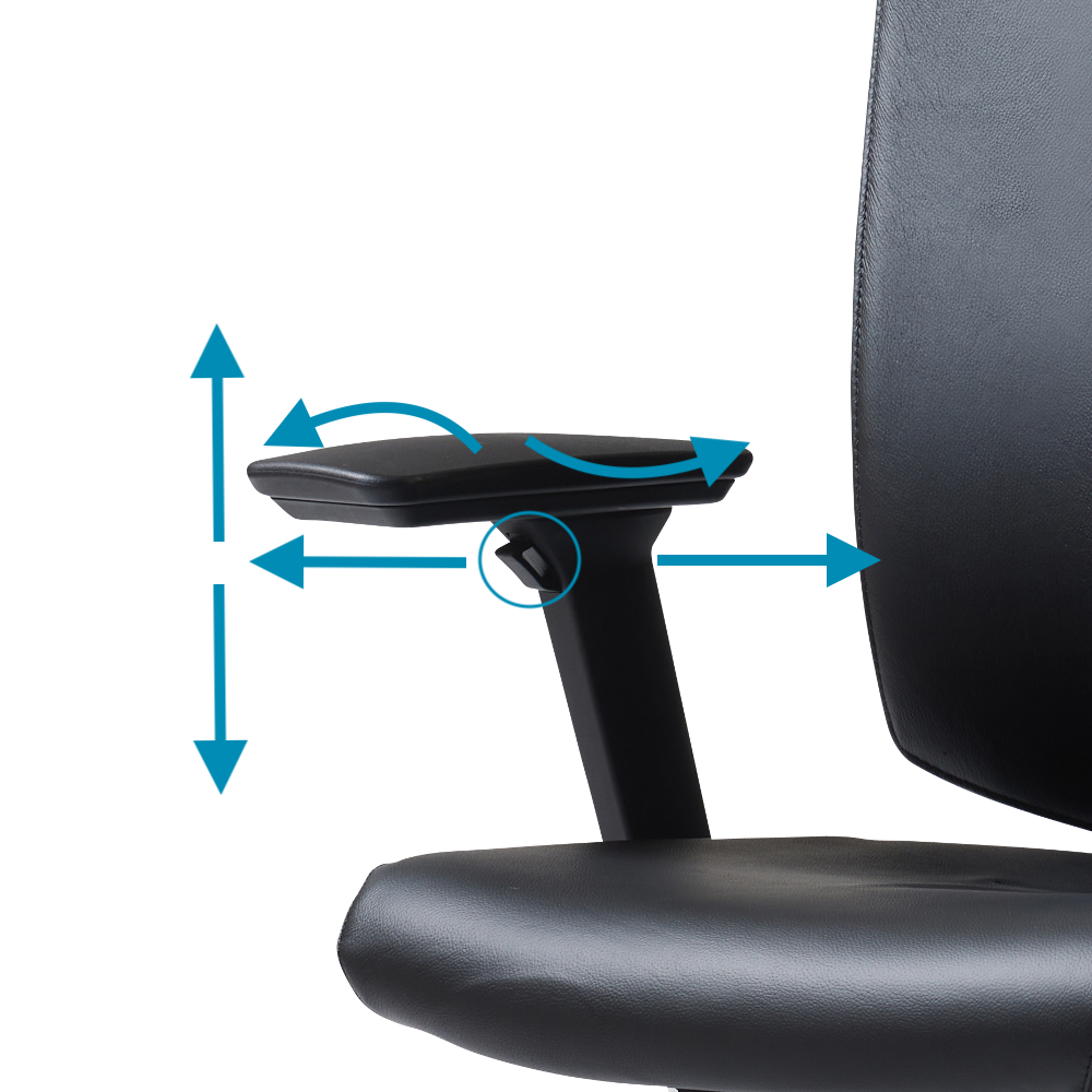 Podłokietniki 3D umożliwiają płynną regulację w trzech kierunkach: