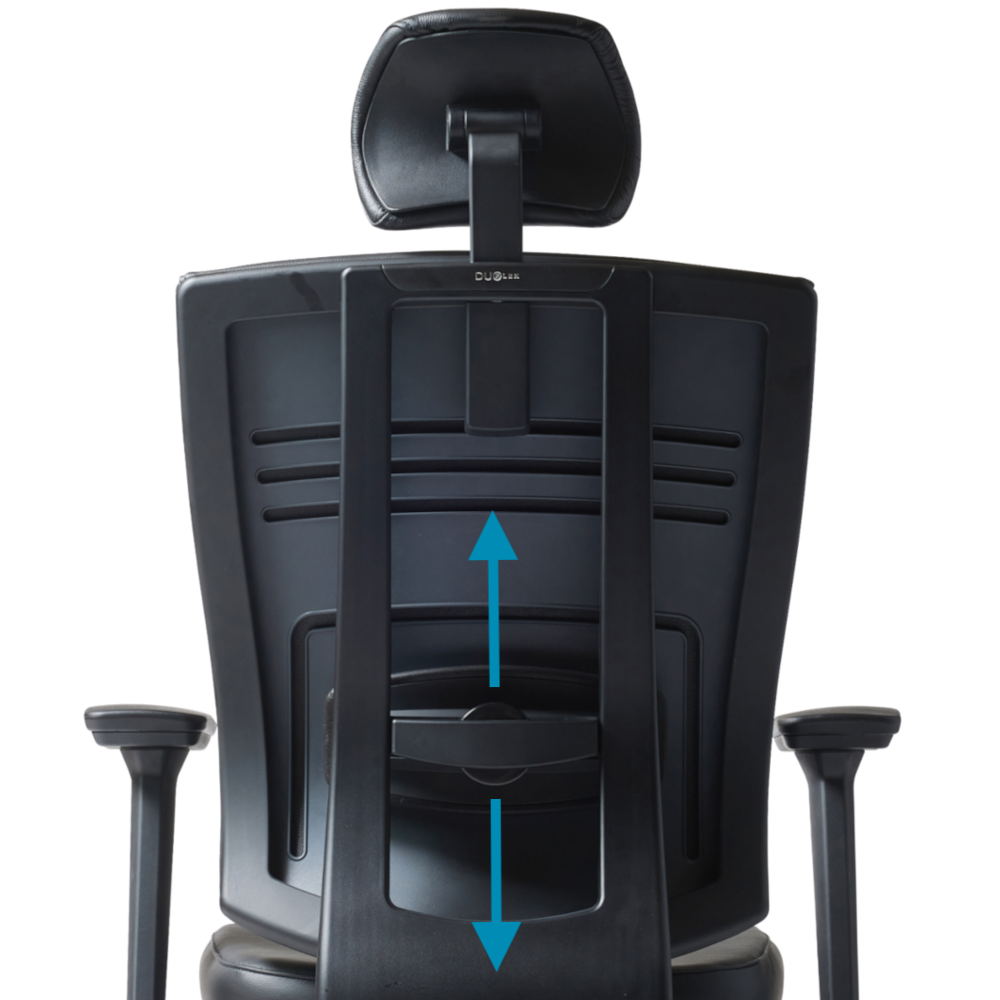 - Wysokość podparcia lędźwiowego regulowana w zakresie 100 mm (4 cala) w celu zapewnienia dodatkowego podparcia dolnej części pleców