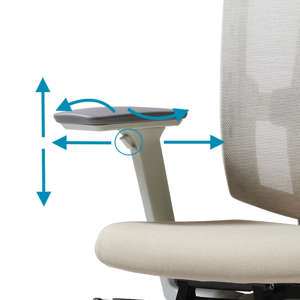 Podłokietniki 3D umożliwiają płynną regulację w trzech kierunkach: