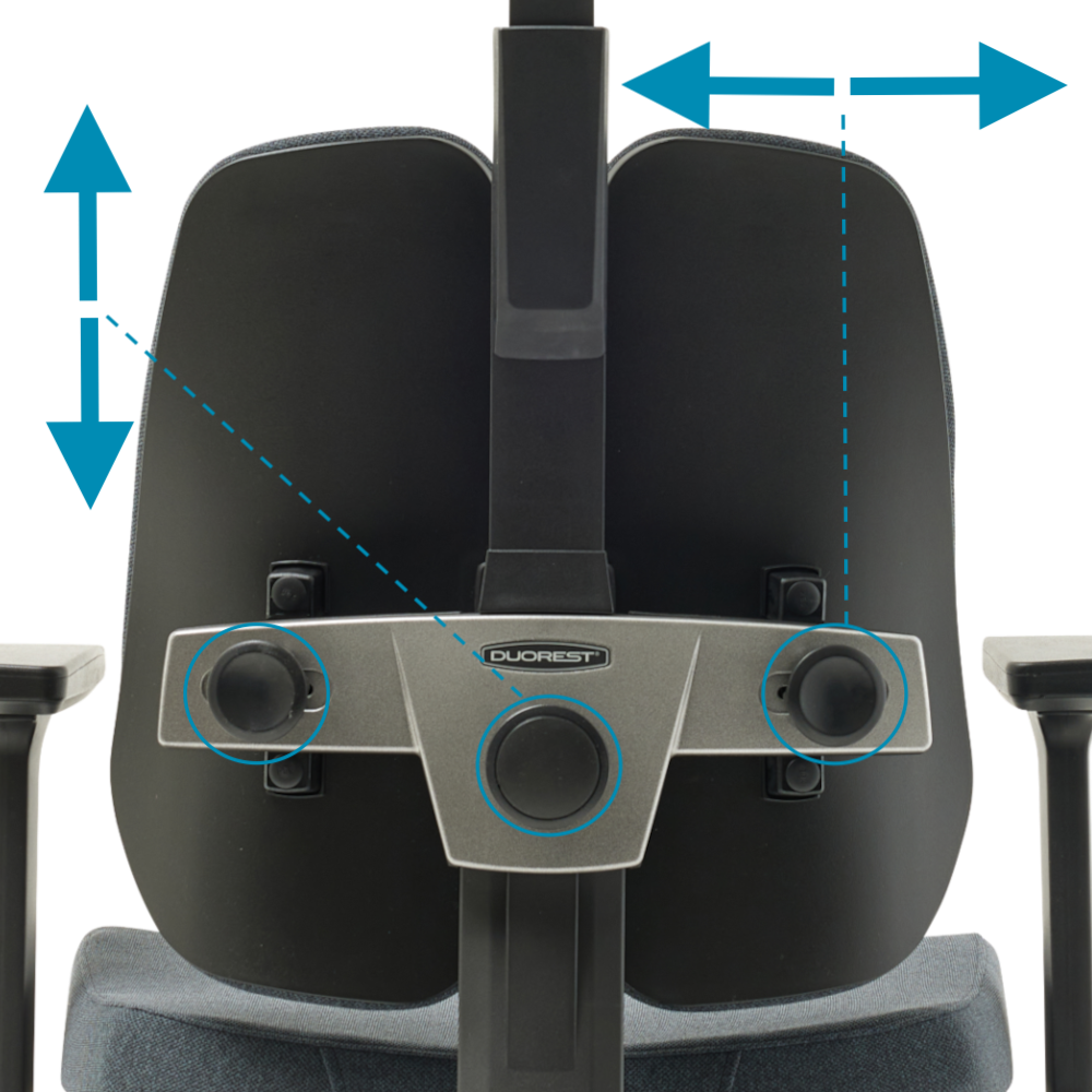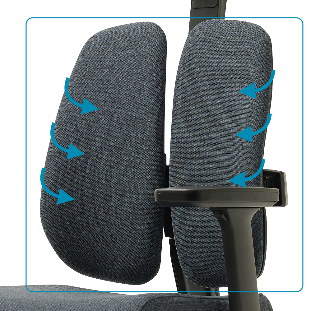 Niezależnie od tego, jak precyzyjnie ustawisz oparcia, system DUOREST® zawsze będzie dynamicznie podążał za Twoimi ruchami. Redukuje nacisk na kręgi i łagodzi bóle pleców, pozwalając na aktywne i zdrowe siedzenie.