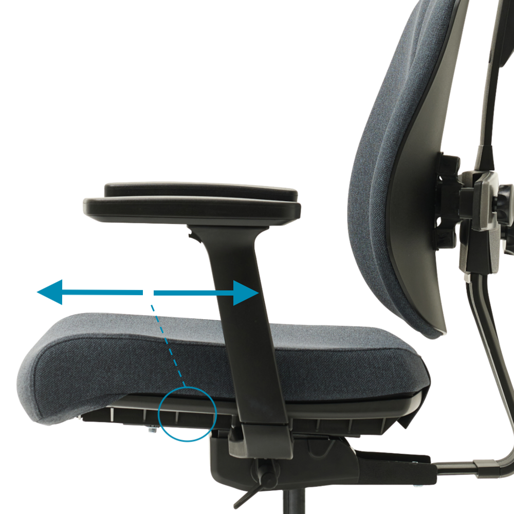 - Seat depth adjusts within a 55mm (2.2”) range to accommodate users of varying leg lengths.