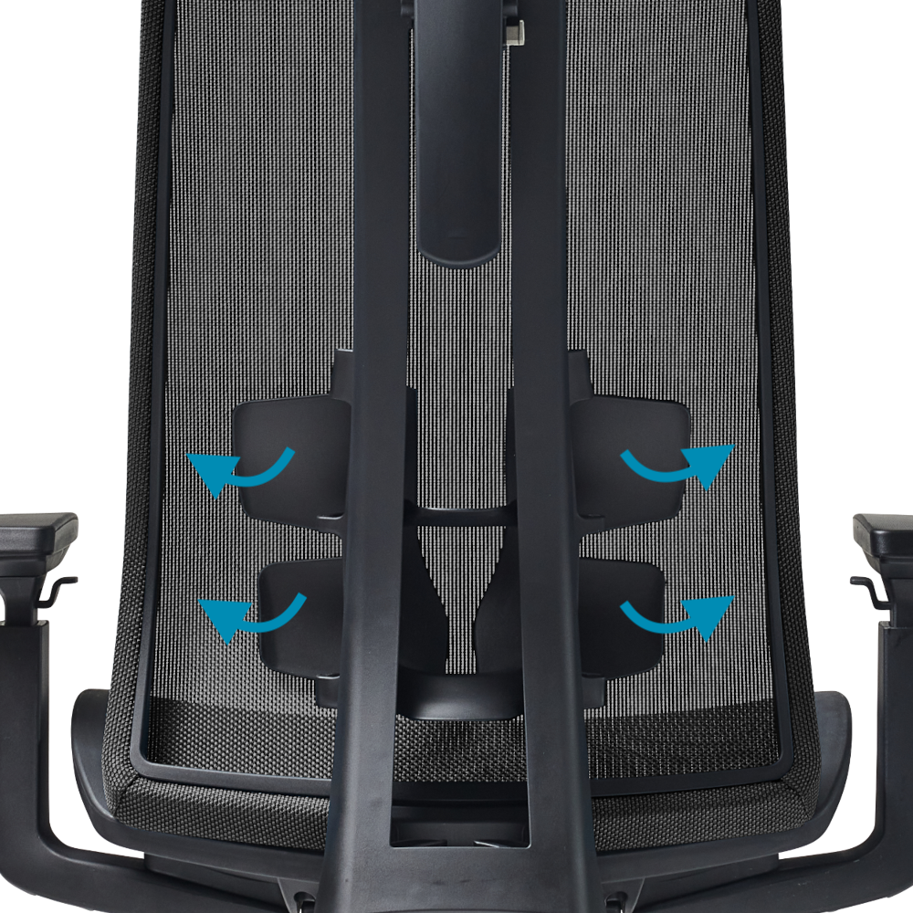 - Nowatorskie podwójne podparcie lędźwiowe zmniejsza zmęczenie, wspiera lewą i prawą stronę kręgosłupa lędźwiowego oraz łagodzi bóle pleców związane z długotrwałym siedzeniem