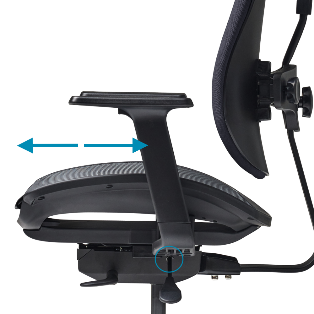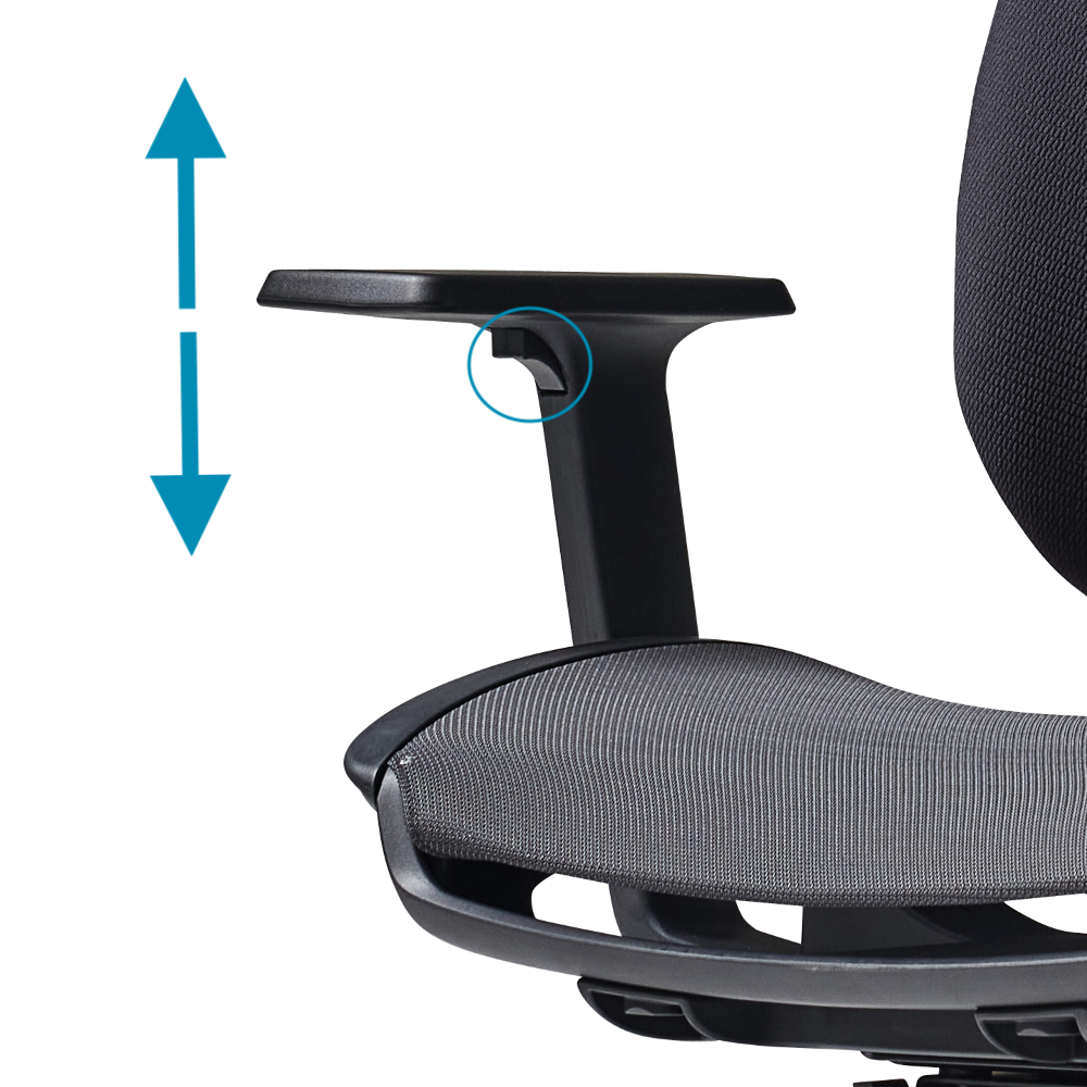 Podłokietniki umożliwiają płynną regulację w jednym kierunku: