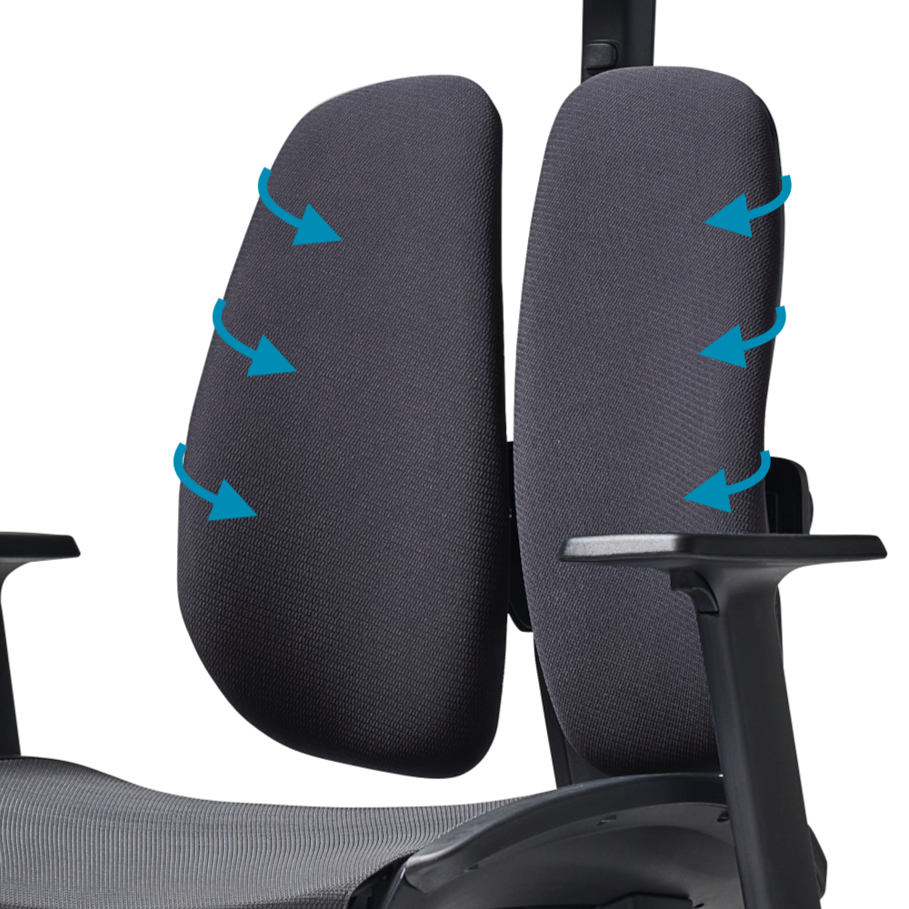 Opatentowany system dwóch niezależnych oparć to serce każdego fotela Duorest. Obejmują one Twoje plecy, redukując nacisk na kręgosłup nawet o 50% w porównaniu do tradycyjnych krzeseł. Poczuj ulgę i swobodę ruchu, której potrzebujesz.