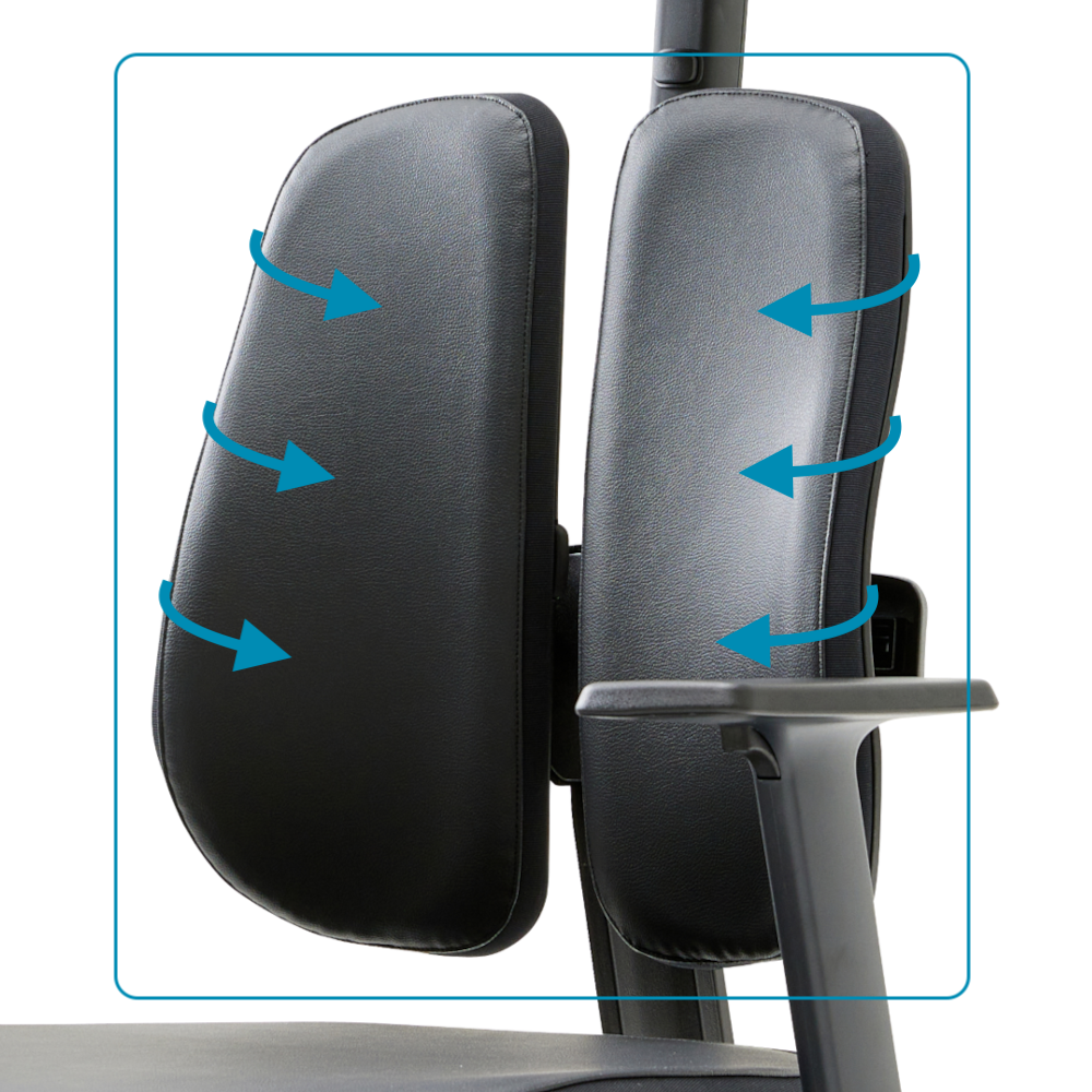Oparcia umożliwiają płynną regulację w dwóch kierunkach: