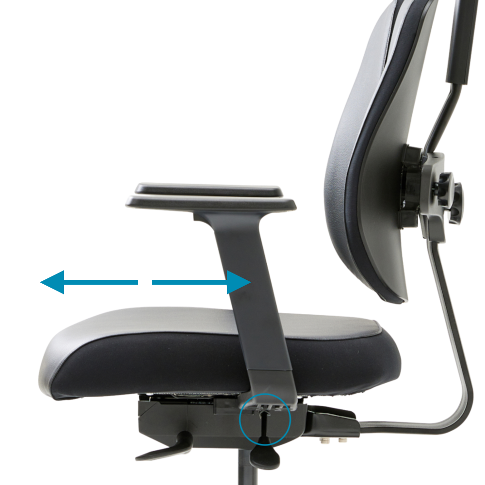 Podłokietniki umożliwiają płynną regulację w jednym kierunku: