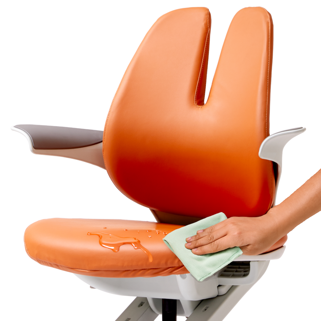 Fotel został zaprojektowany z myślą o łatwym utrzymaniu czystości. Siedzisko wykonane jest z materiału odpornego na zachlapania, co pozwala na szybkie wytarcie rozlanych płynów. W przypadku większych zabrudzeń elementy siedziska i oparcia można zdemontować w celu dokładnego ih wyczyszczenia.
