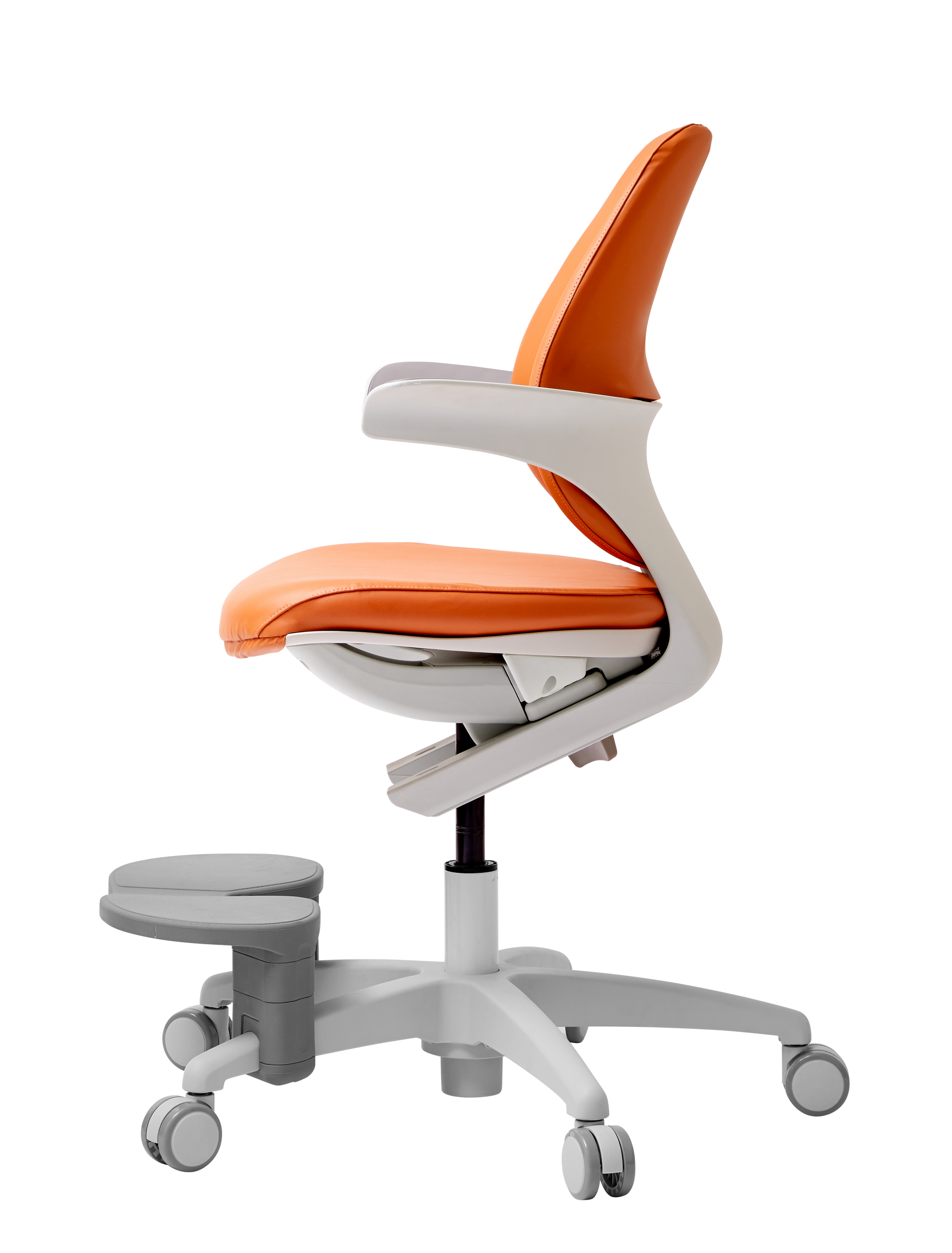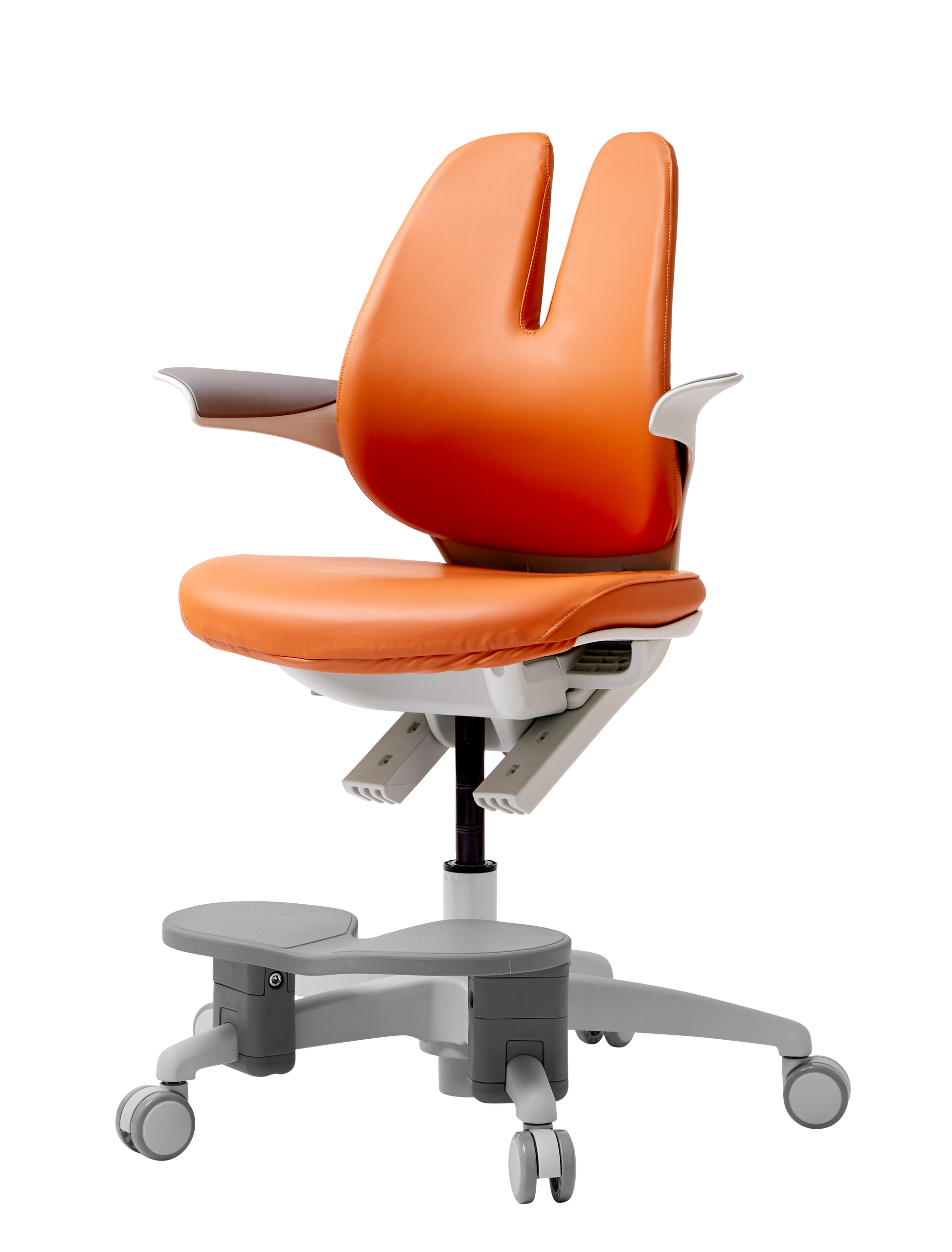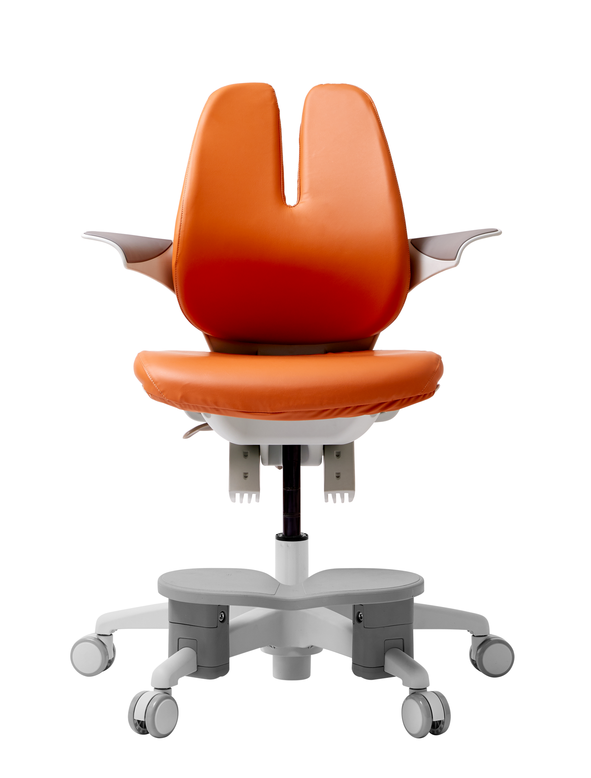 Serce krzesła stanowi opatentowany system podwójnego oparcia, który działa jak dłonie mamy. Dwie elastyczne części oparcia idealnie dopasowują się do krzywizny kręgosłupa dziecka, równomiernie rozkładając nacisk na plecy. To rozwiązanie skutecznie zapobiega wadom postawy i wymusza naturalną, zdrową pozycję i wspomaga siedzenie bez wysiłku.