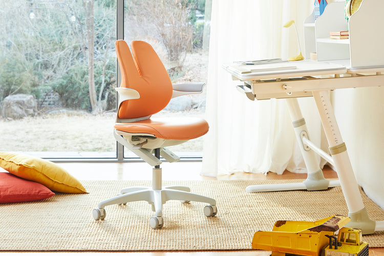 Duorest Rabbit to ergonomiczne krzesło do komputera na lata. Prosty w obsłudze mechanizm (pokrętło z tyłu oparcia) pozwala na jednoczesną regulację wysokości oparcia i głębokości siedziska. Dzięki temu fotel można precyzyjnie dopasować do zmieniającego się wzrostu dziecka, zapewniając optymalne podparcie na każdym etapie rozwoju.