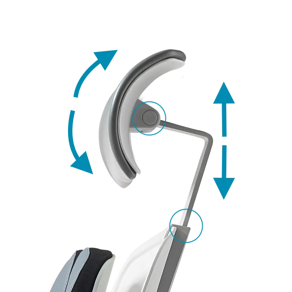 - Headrest accessory adjusts 49mm (1.9") vertically