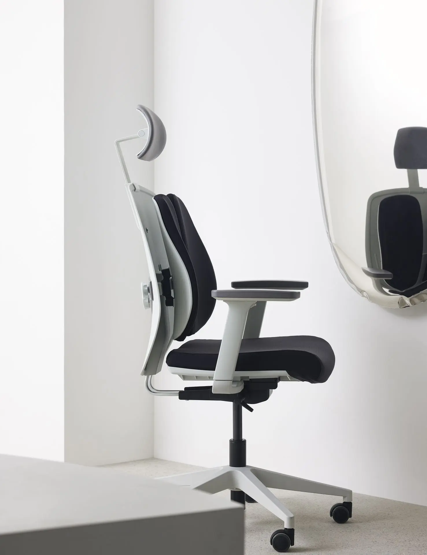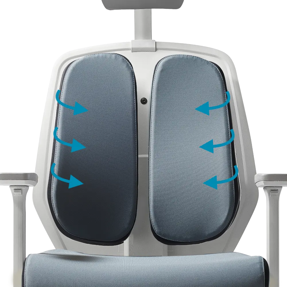 Fotel Alpha pozwala na precyzyjne, niezależne ustawienie każdej z dwóch części oparcia. To funkcja, która umożliwia stworzenie podparcia idealnie dopasowanego do unikalnego kształtu Twoich pleców, gwarantując komfort na najwyższym poziomie.