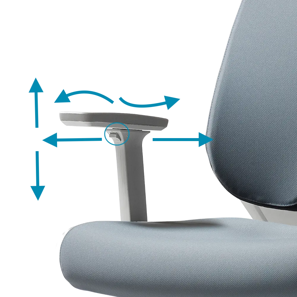 Zyskaj pełną kontrolę nad swoją pozycją. Wielopłaszczyznowa regulacja podłokietników (3D) pozwalają stworzyć idealnie dopasowaną przestrzeń pracy, minimalizując napięcie w ramionach i barkach.
