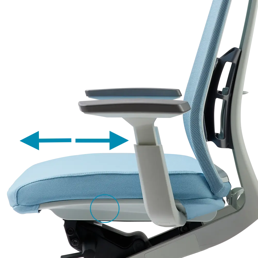 - Seat depth adjusts within a 50mm (2.0”) range to accommodate users of varying leg lengths